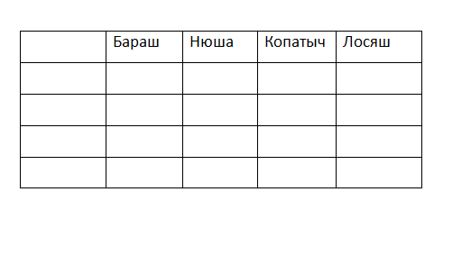 У детей бывают состояния, когда тяжело удерживать в голове несколько условий. А еще бывают задачи, в которых условий столько, что невозможно удержать их в голове ни последовательно, ни одновременно. В качестве вспомогательного инструмента удобно использовать таблицы. С их помощью объекты задачи можно упорядочить и построить между ними взаимосвязи. Кроме того, при записи условий задачи в табличном виде тренируется волевой ресурс- дети тщательно и последовательно должны записать условия в таблицу. Скрупулезность- наше все. Для начала объясняем ребенку, что такое таблица и принцип ее действия. Таблица - это клетчатое поле. Оно имеет столбцы и строки. Пересечения столбца и строки показывает наличия отношений между тем, что записано в столбце и строке. 1. Нюша , Бараш, Копатыч и Лосяш играли с мячами синим, зелёным, жёлтым и красным.. Каким из мячей играл каждый из них, если мяч Бараша не синий, у Нюши не синий и не красный, а у Копатыча желтый мяч? Задаем ребенку вопрос: о чем задача? кт