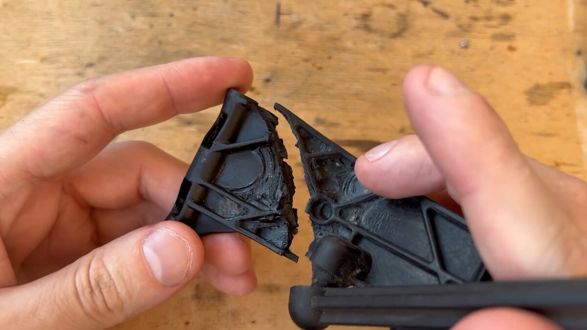 При склеивании пластиковых деталей чаще всего используется секундный клей, стоит он недорого и справляется за считанные секунды, как и указано в названии. Но склеить им сложные пластики не выйдет, я уже пробовал склеить деталь из полиамида и клей легко отделяется, то есть совсем не подходит под такую задачу. Деталь из полиамида попросили склеить мои знакомые, это часть автомобильного механизма, которую отдельно не купить. До этого я не клеил полиамид, так как этот пластик попадается очень редко, знал одно, что он очень крепкий и сложный в ремонте. PA66 - полиамид 66, GF55 указывается на процентное содержание стекловолокна, что придает материалу большую прочность. На самой детали видно, что ее пытались склеить, возможно нагревали и хотели сплавить между собой, но ничего не вышло, оно и не мудрено, температура плавления полиамида выше, чем у обычного пластика, но если перегреть его, то сплавить между собой не получится. Я начал искать все возможные варианты и нашел одно средство, котор