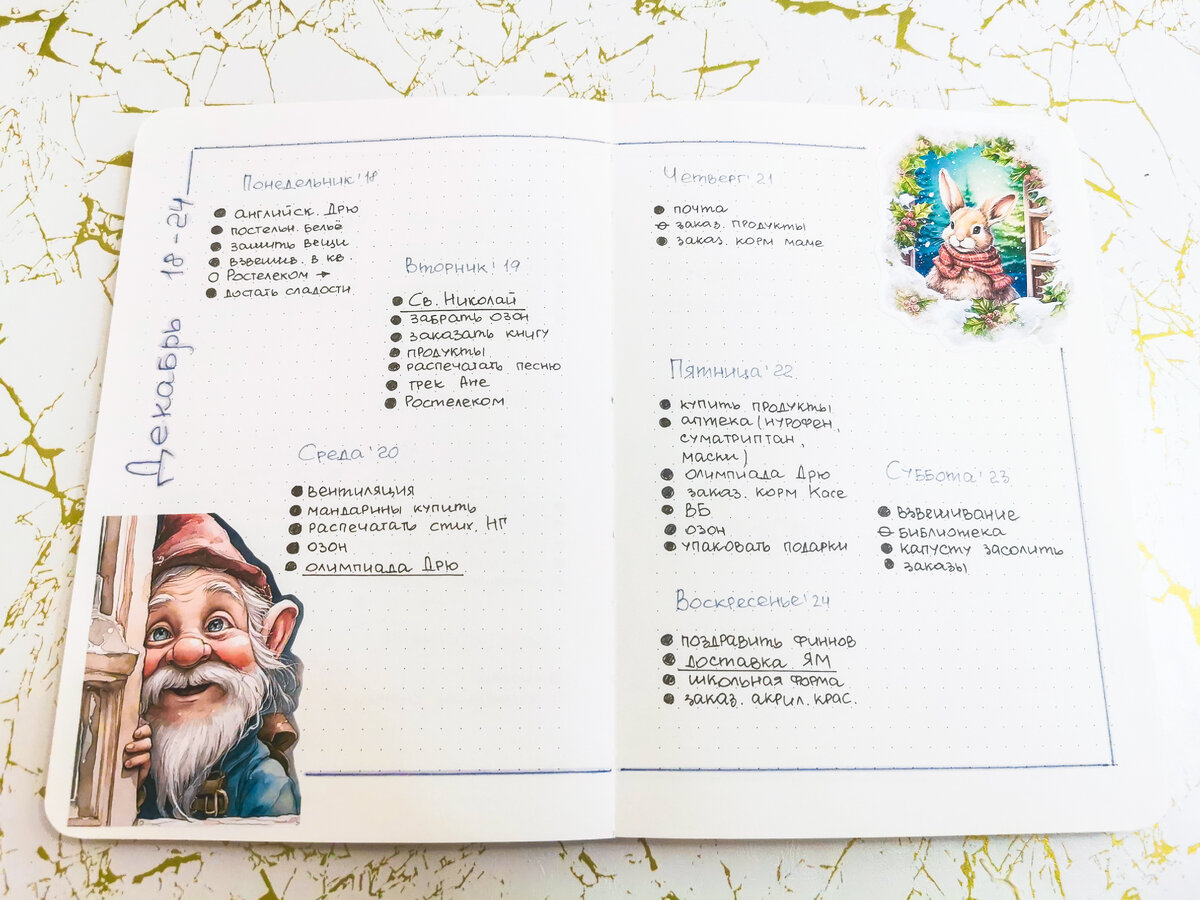 Делюсь заполненным разворотом за неделю с 18 по 24 декабря.