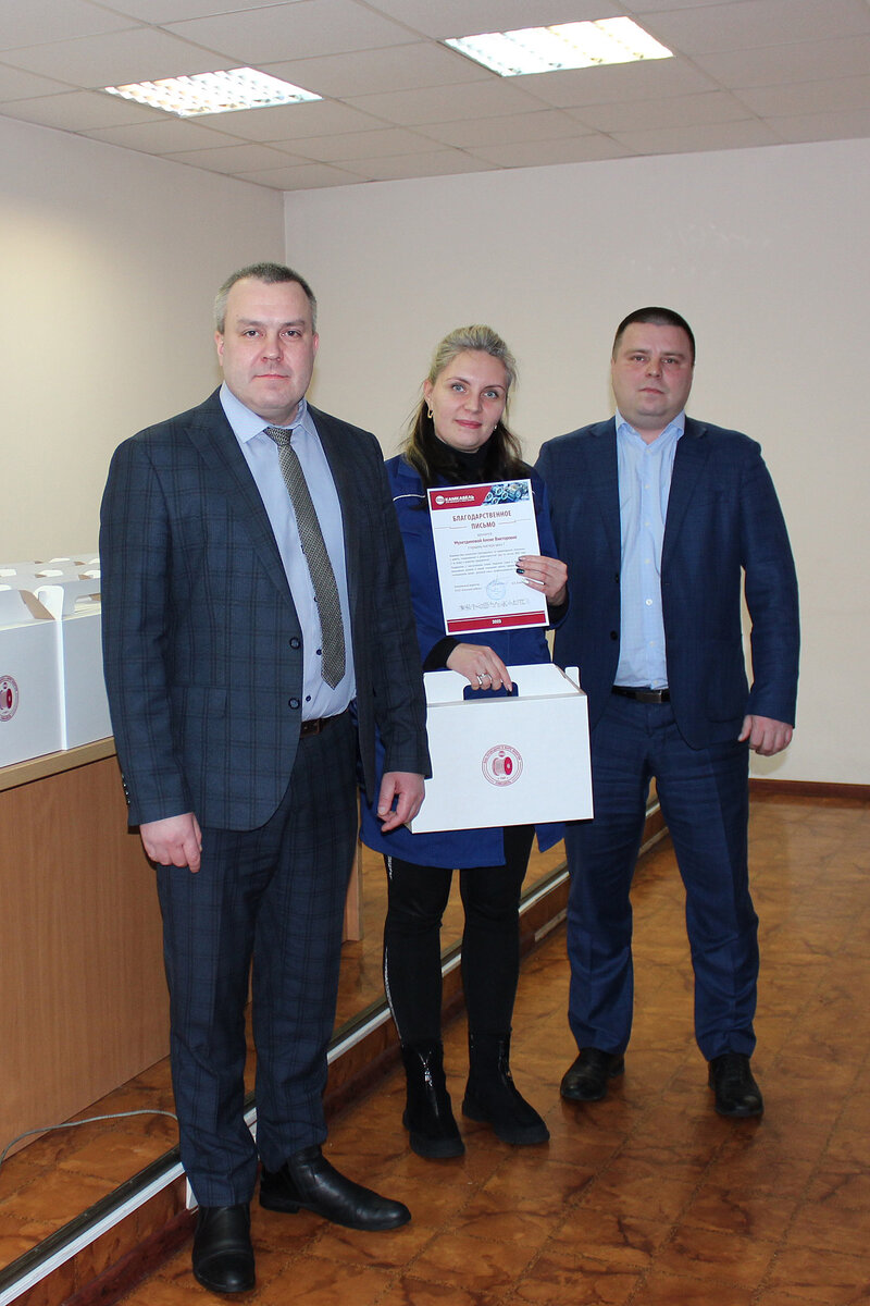 В канун Нового года на «Камском кабеле» отметили сотрудников, которые внедрили наибольшее количество улучшений на участках основного производства. Поздравление победителей конкурса стало ежегодной традицией. Технический директор В.А. Павлов и заместитель директора по производству А.В. Касимов вручили благодарственные письма и подарки отличившимся старшим и сменным мастерам цехов, сотрудникам СОРО, ОТК и ОРПС. Казалось бы, после стольких лет внедрения производственной системы «Бережливое производство» сложно найти возможности для совершенствования отлаженных процессов. Но нашим сотрудникам это удается! Как отметила начальник ОРПС Н.Н. Гилина, в этом году количество внедренных улучшений увеличилось на 20% и превысило 1300 (даже без учета декабря)! Наибольшую активность проявляет персонал цехов 7, 9 и 2. Лидерами среди коллег стали старший мастер участка скрутки жилы, изолирования и термообработки проводов цеха 7 Е.Ю. Худеньких, старший мастер участка перемотки, комплектации и сдачи готов