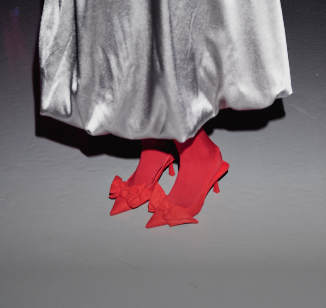 Вариант стилизации, где колготки в центре — для самых смелых. Например, Gucci предлагает надеть поверх колготок прозрачную юбку. Инфлюенсерам полюбилось сочетание плотных красных колготок с оверсайз-пиджаками и шубами. Все эти смелые образы хороши для шумной вечеринки, фотосессии или особого выхода.