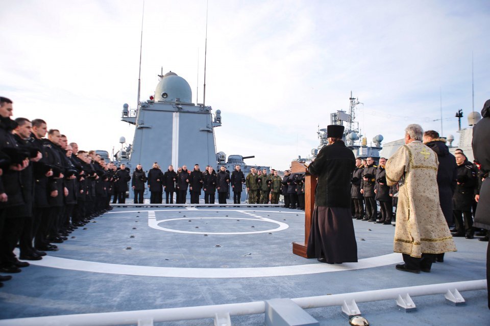 В понедельник на Северном судостроительном заводе в Санкт-Петербурге президент России Владимир Путин возглавил торжественную церемонию спуска на воду трех новых военных кораблей, одним из которых является многоцелевой ракетный фрегат "Адмирал Головко". Путин присутствовал на церемонии подъема военно-морского флага на "Адмирале Головко", а торжественное открытие двух других кораблей - малого ракетного корабля "Наро-Фоминск" и минного тральщика "Лев Чернавин" - проходило по видеосвязи.В ходе мероприятия Путин отметил процветание судостроения в России, что является частью усилий страны по укреплению своего военно-морского потенциала. Он отметил, что в настоящее время на российских верфях ведется строительство пяти фрегатов, восьми корветов, 13 малых ракетных кораблей и еще более 50 кораблей различных классов, находящихся на разных стадиях завершения строительства. Путин подчеркнул, что ввод в строй новейших кораблей свидетельствует о росте и продвижении российской судостроительной отрасли