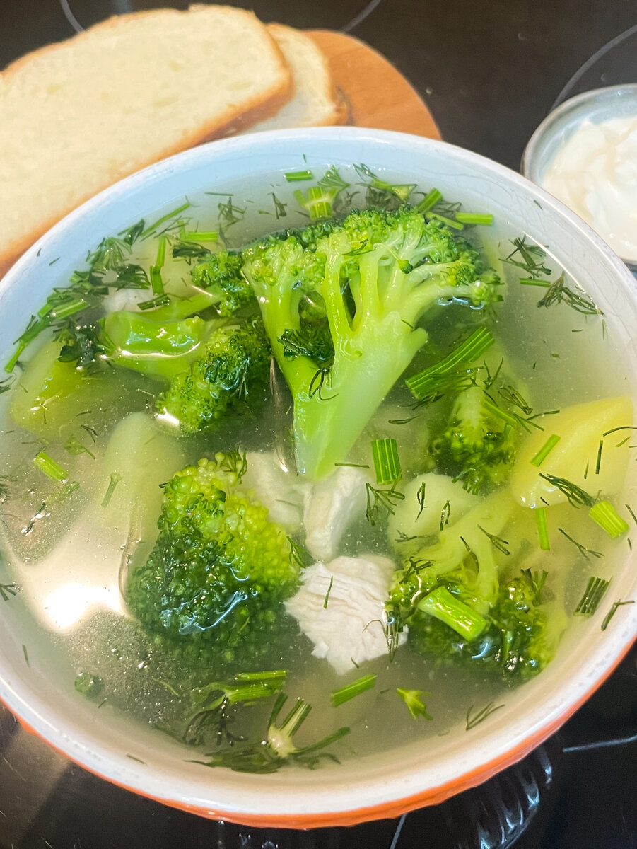 Очень вкусный суп за 30 минут. С брокколи и зеленым горошком.