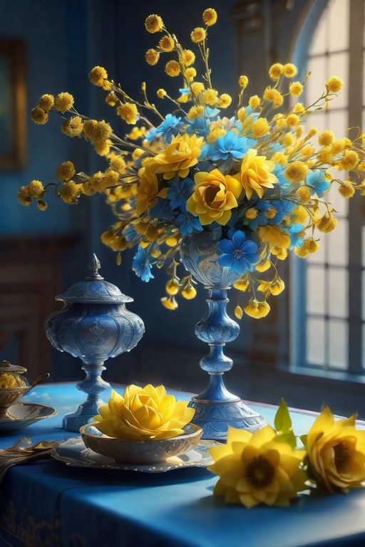 Друзья, ловите прекрасный промт и наслаждайтесь просмотром замечательных артов, созданных по нему. Промт: Элегантный стол, со вкусом украшенный, яркие оттенки, оттенки нежного желтого и царственного голубого, очаровательные желтые и синие цветы, люминесцентные, светящиеся цветы, потусторонний свет, виньетка, тренды CGSociety и ArtStation HD, фотореалистичность, невероятно детализированная, отражение, октановое число, детализированное лицо, 35 мм, F/2,8, 4к Посмотрите, что получилось! Арты, сгенерированные на базе исходных женских образов: Все эти изображения созданы мною в бесплатной нейросети Playgroundai. P.S. Приглашение на Мастер-Классы по изучению Топовых Нейросетей, где Вас ждут Бонусы и Подарки: <<<<< Участвовать бесплатно >>>>>
