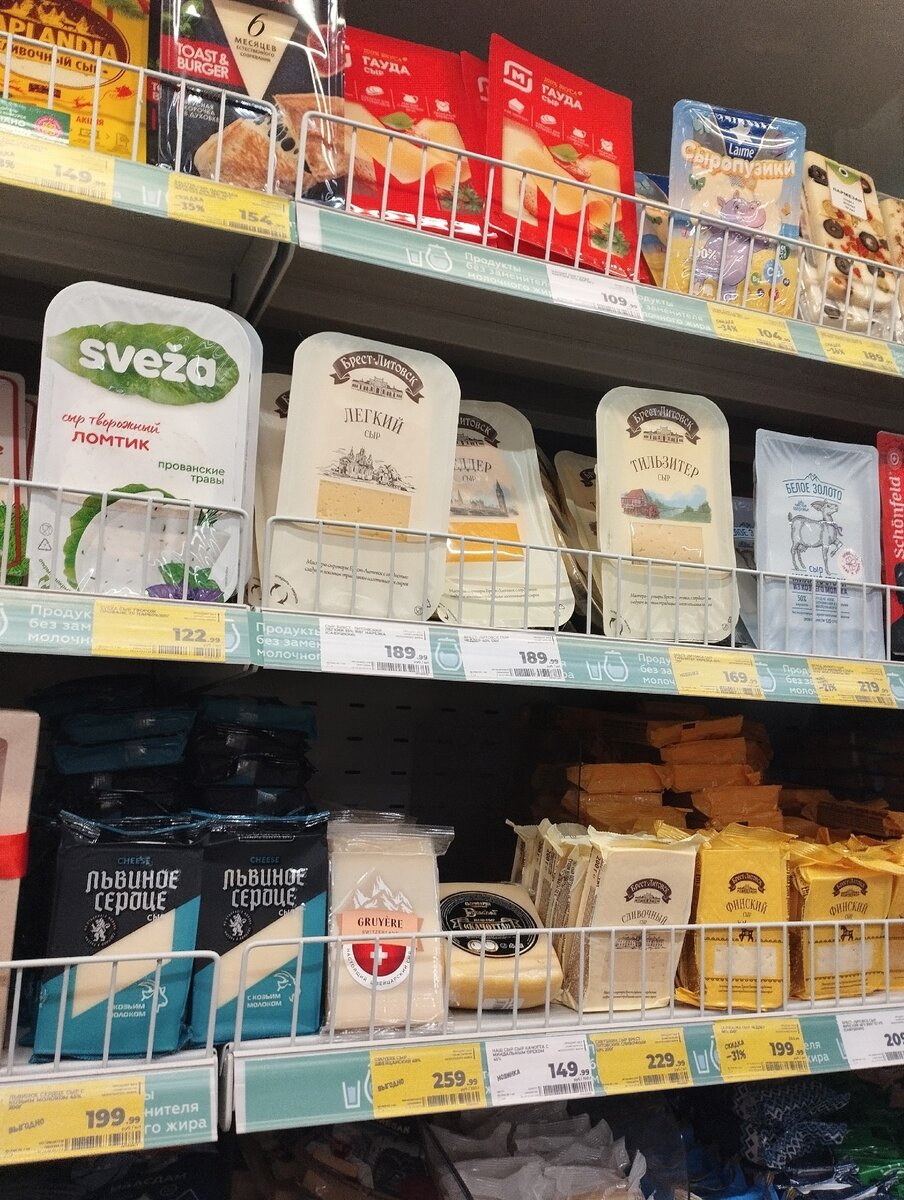 Уверена что многие уже составили список блюд, которые планируется приготовить на праздник, подсчитали все траты на продукты и даже приобрели большую часть из того, что может понадобиться, однако все равно ведь найдется и то, что забыли приобрести или оставили на потом. В супермаркетах сейчас как раз предостаточно скидок, благодаря которым мы можем и потратить немного меньше, и приобрести все то, что нужно и на каждый день, и на праздничный стол. Я предлагаю заглянуть в "Магнит", мои покупки сегодня (26.12) состоялись в этом магазине, причем почти вся корзинка была собрана по желтым ценникам. Заметила что были и хорошие скидки, дающие возможность сэкономить аж 60%, но обо всем по порядку. Обсудить предлагаю полки с продуктами, к ним, собственно, и перехожу: Начать почему-то захотелось с сыра, ибо вижу несколько весьма любопытных предложений. В первой подборке мне нравится творожный сыр ломтиками, он еще и с прованскими травами, а стоит 122 рубля. Такой подходит и для салатов, и для укра