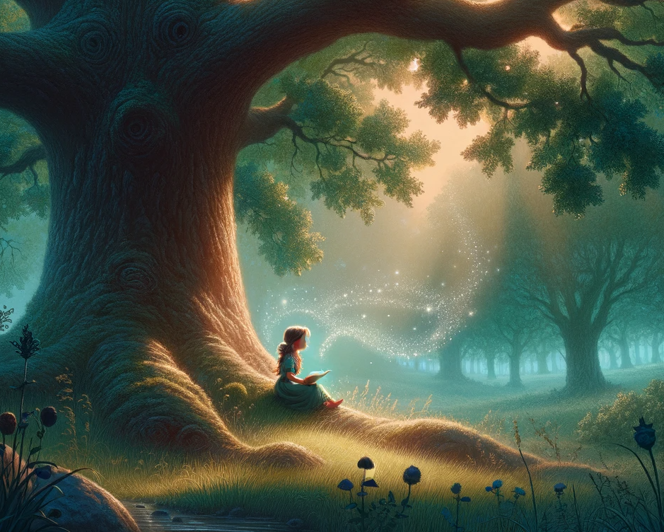 В небольшом городке, где каждый домик был окрашен в яркие цвета, находился старый парк. Этот парк давно забыли жители города, и он стал похож на страницу из старой книги - загадочной и полной тайн. В центре парка стоял величественный дуб, обросший мхом и зеленью, будто страж времени, хранящий истории прошлого. Мария и ее мечта Маленькая девочка Мария, с кудрявыми волосами и глазами цвета летнего неба, часто гуляла около этого парка. Она мечтала оживить его, наполнить смехом, радостью и цветами. Мария верила, что каждое место в мире заслуживает быть счастливым. Однажды утром, взяв корзину с яркими красками, кистями и мелками, Мария отправилась в парк. Она начала рисовать: на скамейках появились бабочки и цветы, а на стволах деревьев — веселые узоры. Каждый день она приносила что-то новое: колокольчики, ромашки, небольшие фонарики, которые она вешала на ветви. Голос старого дуба Старый дуб, под ветвями которого Мария любила отдыхать, казалось, оживал от её рассказов и заботы. Мария чувст