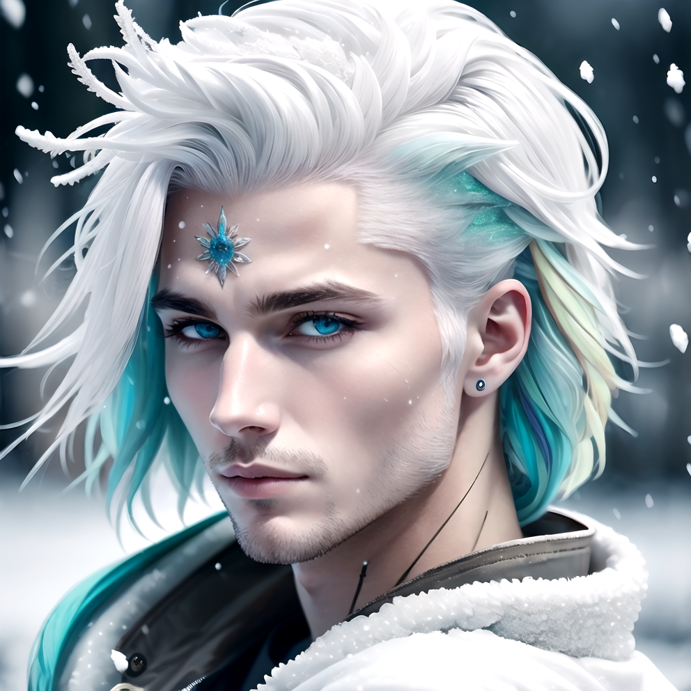Нейросеть Stable Diffusion: блондин с голубыми глазами / снежные красавцы / зимние портреты 4ч / парень-зима