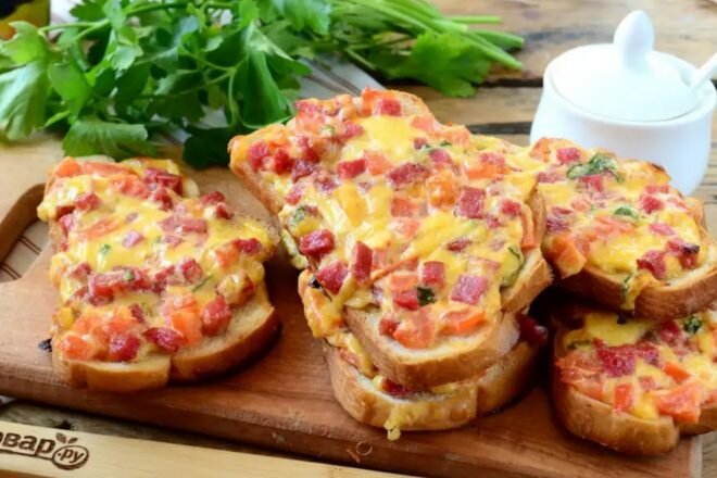 Горячие бутерброды с колбасой и сыром в микроволновке