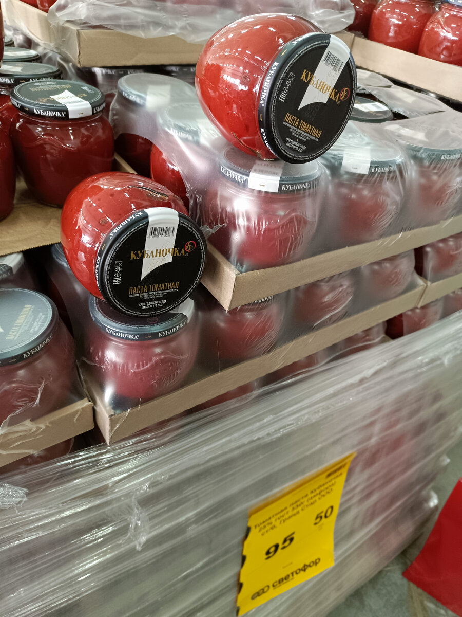 Как и многие магазины, "Светофор" тоже неплохо подготовился к новогодним праздникам. В торговом зале постоянно появляются популярные товары и новинки, которые раскупаются за короткое время. И в этом обзоре, делюсь с вами увиденным в "Светофоре" города Крымск. Густая томатная паста "Кубаночка", в стеклянной банке 550 гр. Цена 95 рублей. Маринованный горький перец "Закрутки без накрутки", в стеклянной банке 720 мл. Цена 113 рублей. Качественная гречневая крупа 1 сорта без мусора и грязи, в упаковке 800 гр. Цена 37 рублей. Мороженая мякоть говядины в брикетах по 1,5-2 кг. Цена 430 рублей за 1 кг. Завезли очень много мороженой горбуши хорошего качества, все целенькие и не помятые. Цена 220 рублей за 1 кг. Мягкий сыр с дырочками "Маасдам" для бутербродов и салатов, фасован по 400-600 гр. Цена 506 рублей за 1 кг. Пекинская капуста разного размера, которая придаст свежесть любому салату. Цена 40 рублей за 1 кг. Вот такая хурма из Узбекистана, качество вы сами видите, всё хорошее уже разобрали