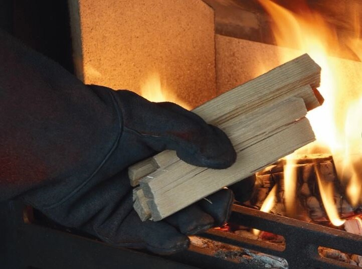 Если предпочитаете более дешевый способ, можно выбрать бытовой фен, но он менее эффективен, чем строительный. Метод прост, заполните топку газетами и щепой, затем снимите ве