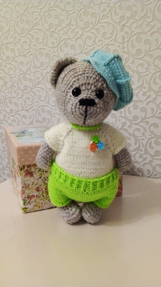 Привет всем кто заглянул ко мне в гости. Понимаю, интереснее читать статьи опытных мастеров игрушек, но все мы начинали с малого. Поэтому я рада что пусть пара человек, прочитали и оценили мои труды. Недавно я вязала мишку. В прошлой статье показала несколько этапов создания. Мишка получился симпатичным и я решила его приодеть. Результат смотрите сами . Мишутка очень мне нравится . Думаю каждый кто сам что-то создаёт руками, восхищается своей работой . Возможно стоило сделать другую одежду или образ другой, я подумаю над этим . А как Вам этот малыш? Очень хочется найти близких по творчеству людей для общения . Пишите мне будет очень приятно . Всем ровных петелек и позитива 🐻
