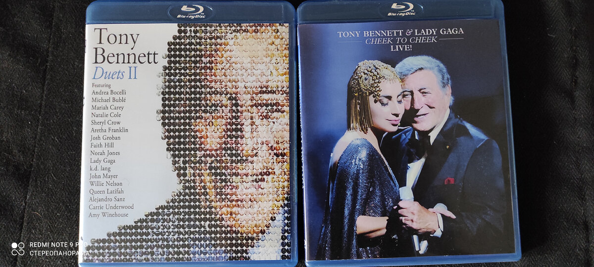 Поскольку Тони Беннетт триумфально шествовал по эстрадным площадкам 50-60-х, то совершенно неудивительно, что я не был ни только его поклонником, но и знатоком его творчества не являлся, да и до сих пор всё ещё далёк от этого. Если он и был в нашей стране для кого-то кумиром, то эти поклонники из поколения моих родителей, а то и дедушек-бабушек. Однако с возрастом всё чаще обращаешься к тому пласту музыки, который по возрастным причинам не застал, однако, начиная слушать эту музыку в зрелом возрасте, всё чаще и чаще открываешь её для себя заново. Наверное этим и руководствовался мой приятель подарив мне два диска которые вы видите на заглавной обложке. Видимо намекая: "а ты послушай (и посмотри), а вдруг...". Но, как часто бывает, отложенное на потом теряется в ворохе другого, иногда более актуального или кажущегося таким. В итоге эти диски пролежали шесть или семь (!) лет, прежде чем я наконец-то решил с ними ознакомиться. Так совпало что оба диска -дуэты. Но если первый - дуэты с р