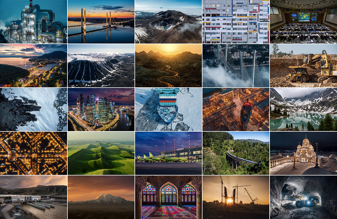 В этом году почти все фоторепортажи — из разных уголков России. Мыс Челюскин — самая северная точка Азии, Северная Земля — последний крупный участок суши, который нанесли на карту. На снимках с Дальнего Востока — вулканы Камчатки и Владивосток. Много интересных мест с природой: Мультинские озёра в горах Алтая, Долгие горы рядом с Оренбургом, плато Путорана с его тысячами озёр и водопадов. Опубликовал классические фоторепортажи с высотными видами — о Магнитогорске, Череповце, Салехарде, Красноярске, Новом Уренгое, Петропавловске-Камчатском, Братске и других городах.