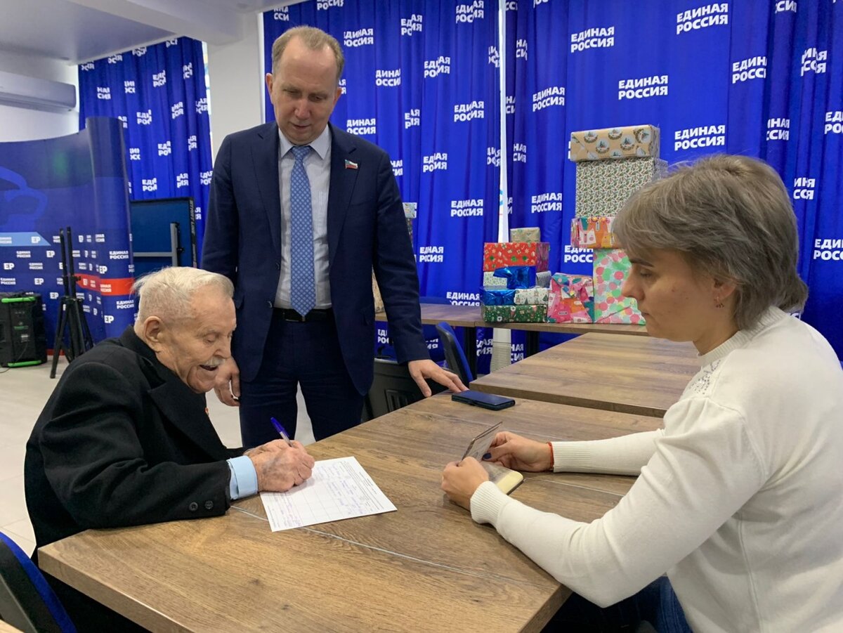 97-летний ветеран войны пришел в астраханский штаб, чтобы поставить подпись в поддержку Путина