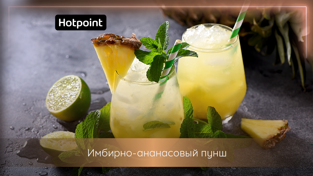 Поймать заряд тропического настроения в разгар зимы? Почему бы и нет! Яркий пунш с тёплыми нотками имбиря и сладкими оттенками ананаса идеально подходит для уютных вечеров и шумной вечеринки в хорошей компании. Он отлично освежает, дарит настроение праздника и восхищает чудесным ароматом. Приготовьте пунш по нашему рецепту, подавайте его холодным, добавив листики свежей мяты и кубики льда. У вас получится просто волшебный коктейль! – ананас — 500 г – вода — 250 мл – газированная вода — 1 л – лимон — 1 шт – лайм — 1 шт – сахар — 130 г – имбирь — 30 г – лёд по вкусу – мята для украшения Холодильник Hotpoint HTR 9202I BZ O3 с режимом быстрого охлаждения Super Cool¹ охладит напиток в короткие сроки, а режим Super Freeze² ускорит процесс заморозки льда для коктейлей в морозильном отделении. А какие напитки предпочитаете зимой вы? Расскажите в комментариях! Почитать ещё: Как правильно хранить продукты в холодильнике Hotpoint Функциональные холодильники: новейшие технологии для сохранения све