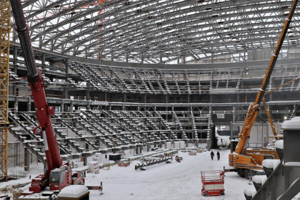 Монтаж каркаса ледового дворца в Нижнем Новгороде выполнен почти на 90%