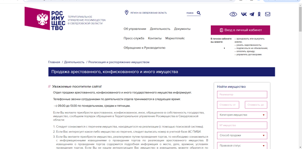 Информация о реализации арестованного и конфискованного имущества публикуется на официальном сайте Росимущества в разделе деятельность, продажа арестованного, конфискованного и иного имущества