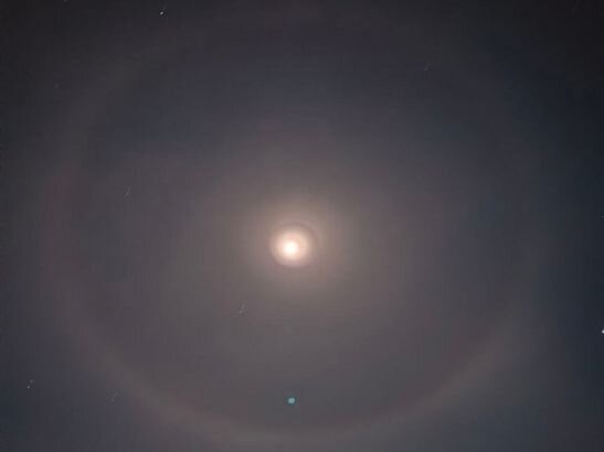 Снимки ночного светила местные жители опубликовали в соцсетях. На кадрах видно, что вокруг Луны образовалось радужное кольцо. Такое явление называют эффектом гало. При этом Луна ярко освещала туманное небо. Некоторые даже сравнили ее с фонарем.