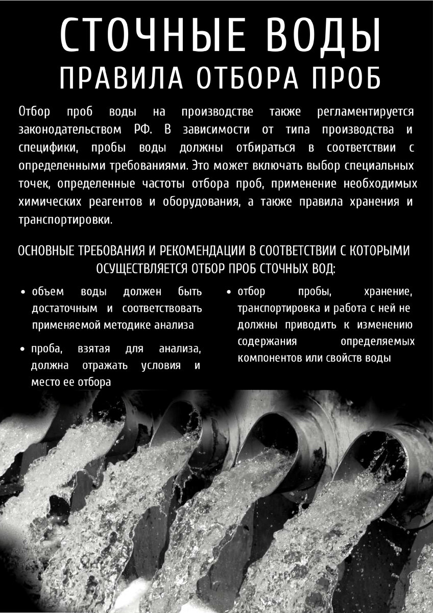 👨🔬Хотите узнать, как происходит отбор проб сточных вод? Мы подготовили для вас 2 часть статьи, которая знакомит Вас с удивительным миром Испытательной лаборатории. Узнайте, к почему отбор проб является неотъемлемой частью оценки качества водосборов и как правильно он проводится. Готовы узнать больше? Читайте нашу статью прямо сейчас!🌊 Совсем скоро рассмотрим отбор проб почвы и отходов.😉