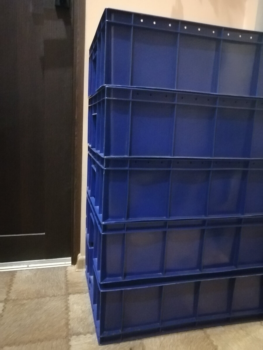 - 35 литров биогумуса сырца, который у меня еще простоял после переборки в двух пластиковых ящиках месяца два для испарения излишней влаги. Примерно раз в неделю я перемешивала гумус и когда увидела рыхлую, рассыпающуюся при сжатии на малюсенькие комочки структуру, то закрыла контейнеры крышками и убрала на хранение в подпол.