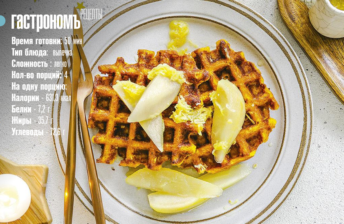 Испеките вафли и подавайте с грушами и имбирным сиропом.