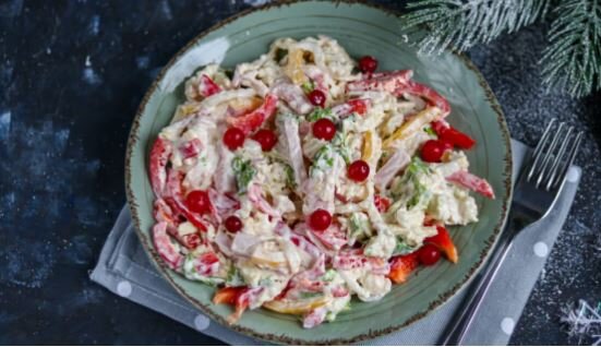 Простое и быстрое блюдо на Новый год. Салат с пекинской капустой, болгарским перцем и ветчиной