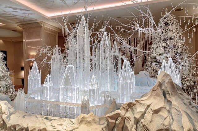 Традиционно потрясающей красоты новогодние декорации можно найти в отеле Four Seasons Moscow рядом с Красной площадью. В этом году холл украшает сказочный сверкающий лес со множеством хрустальных сосулек, зеркал, игрушек... а в глубине всего этого великолепия «ледяной» замок Снежной Королевы. Зайти полюбоваться и сфотографировать можно свободно. А можно и кофе в лобби выпить.