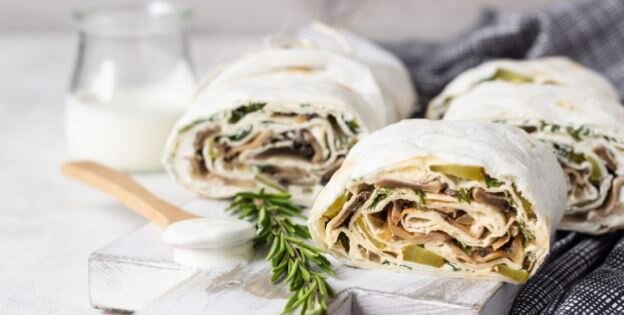 - Начиная с широкой стороны, сверните в рулет. Подавайте сразу.