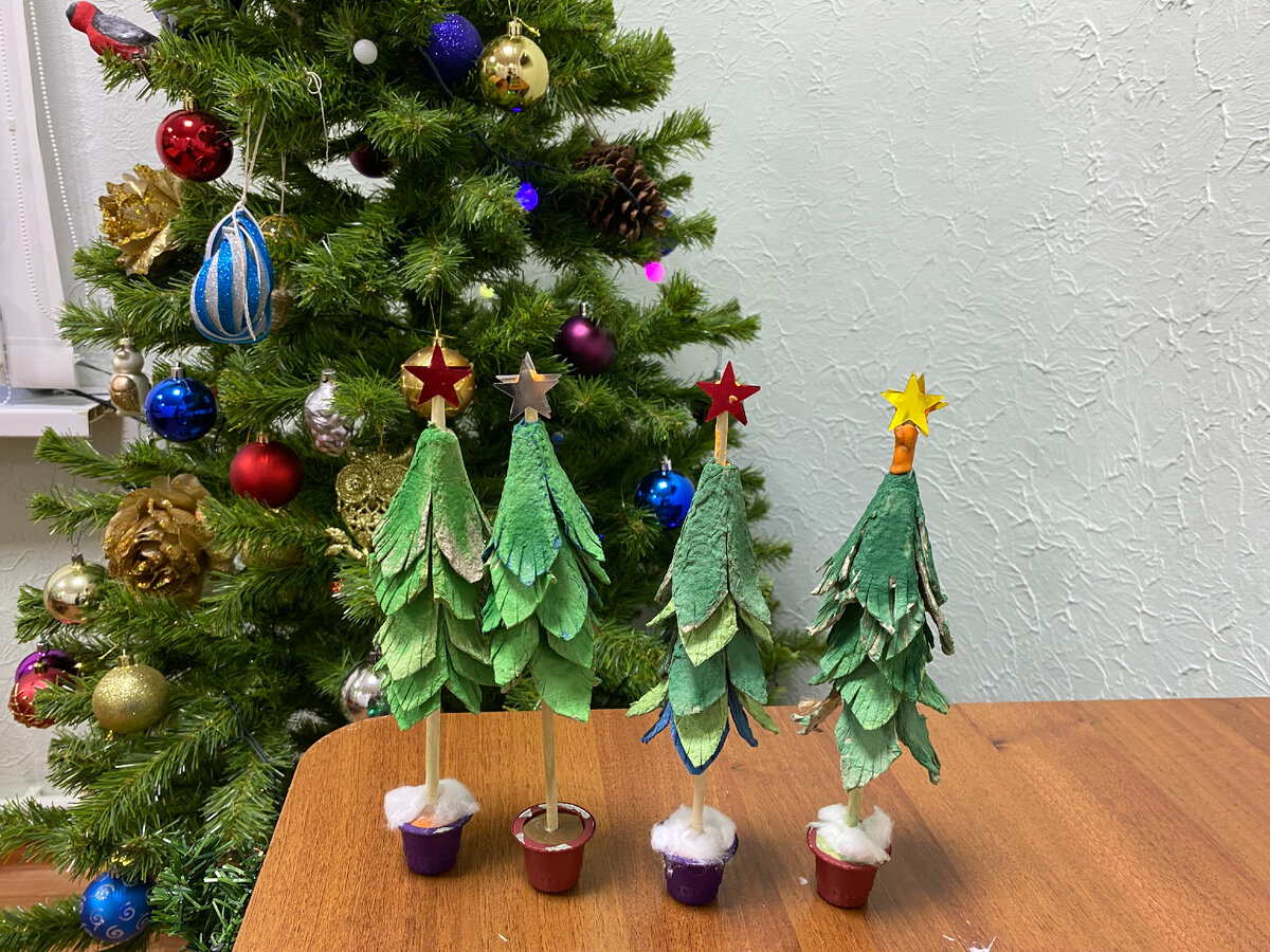 Каждый смастерил ёлочку по-своему, у кого как разыгралась фантазия. #Handmadeвбиблиотеке