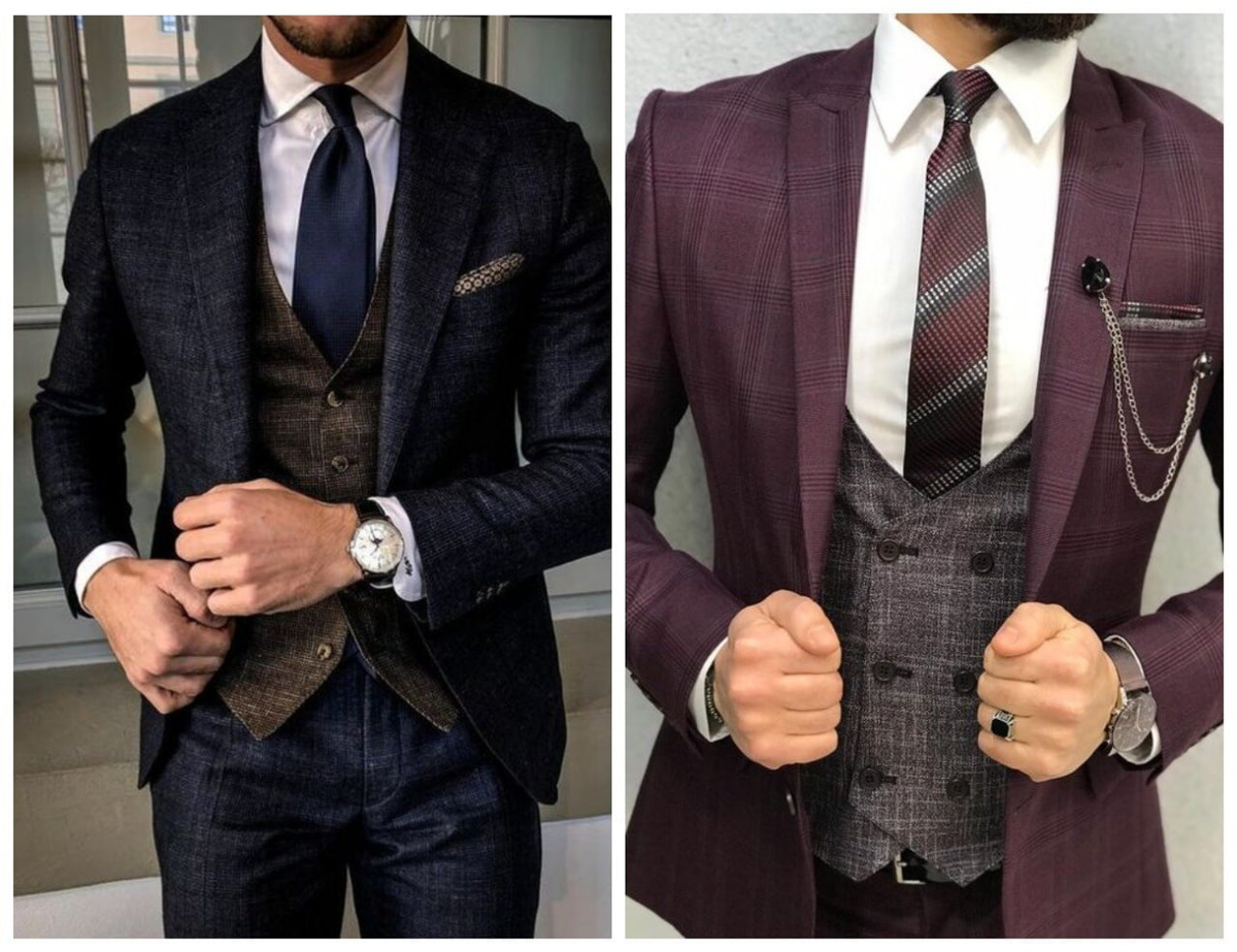 Вариант номер раз: берём сам костюм яркий и неформальный. Тут главное — придерживаться двух правил: а) брать фактурную, а не атласную ткань б) брать более закрытый, а не фрачный жилет. Открытый жилет с низким вырезом это доп. формальность, атлас тоже повышает формальность до варианта "жених на пороге ЗАГСа" А оно вам надо?