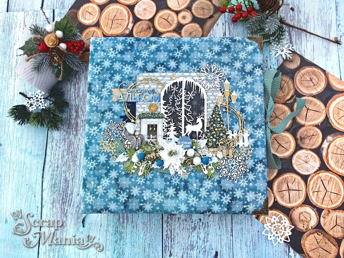 Добрый день всем! С вами сегодня Рамзиля Так быстро летит время, вот и 2023-тий год подходит к завершению, а мы готовимся к встрече нового года и выбираем подарки для своих родных и близких. Идеальный подарок -это подарок, который не только продуман, но и уникален и индивидуален. Подарок, который запечатлеет воспоминания на всю жизнь, будет хранится вечно. Сегодня я, покажу вам зимний новогодний семейный альбом. Этот альбом я сделала на заказ и его хотят подарить именно на Новый год. В этой работе я объединила три зимние коллекции "Сканди Новый год" , "Фономикс.Новогодний, а для подложек использовала листы с зелеными принтами из набора бумаги "Волшебный снегопад". Получился большой и интересный альб, размером 30х30см, на 5 разворотов. Обложку обтянула тканью "Новогодние традиции.Снежинки" На обложке создала кусочек уютного дома с камином, с креслом качалко и морозным узором за окном. Использовала в композиции чипборды, которые покрыла белой и золотой пудрой,. Добавила вырубку, высеч