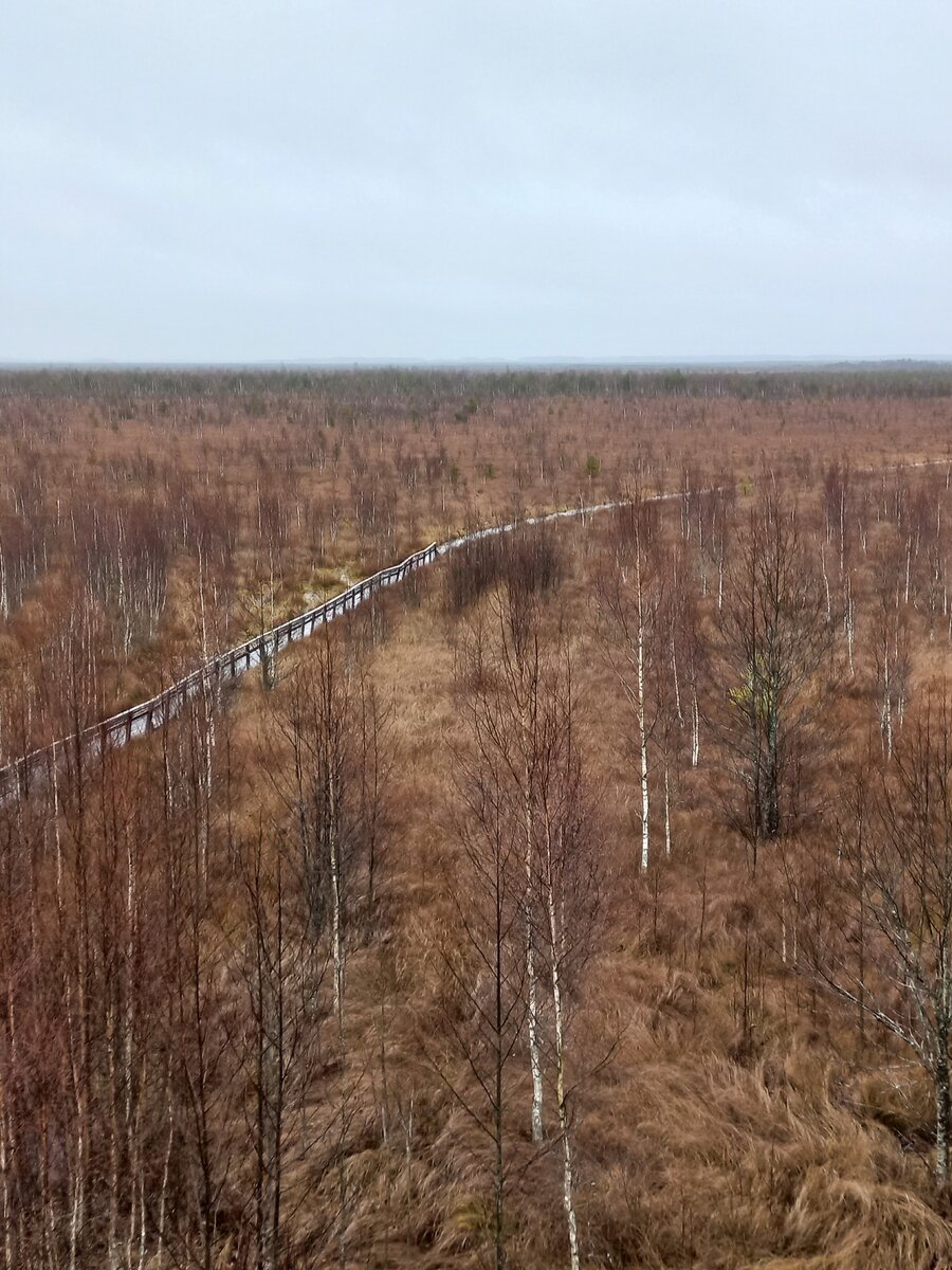 На северо-западе Белоруссии, недалеко от городка Миёры, раскинулся обширный болотный массив Ельня. Это самое крупное верховое болото страны, его площадь составляет приблизительно двадцать тысяч гектаров, а возраст - около девяти тысячи лет. Когда-то здесь было крупное озеро, впоследствии подвергшееся заторфованию. Теперь на территории Ельненской Болотнянки существуют остатки этого озера - 118 отдельных озер, самое большое из которых Ельня, площадью пять квадратных километров. На болоте обитают около тридцати видов птиц, в том числе такие редкие, как чернозобая гагара, орлан-белохвост и черный аист. А ещё тут перед длинными перелётами весной и осенью останавливаются для кормёжки серые журавли. И хоть начало ноября - самое неудачное время для наблюдений за птицами и хождений по болоту, мы, как большие любители болот в целом и экотроп в частности, не смогли проехать мимо и, несмотря на зарядивший с утра дождь, отправились гулять по Ельненской Болотнянке. Навигатор повёл нас на болото слож