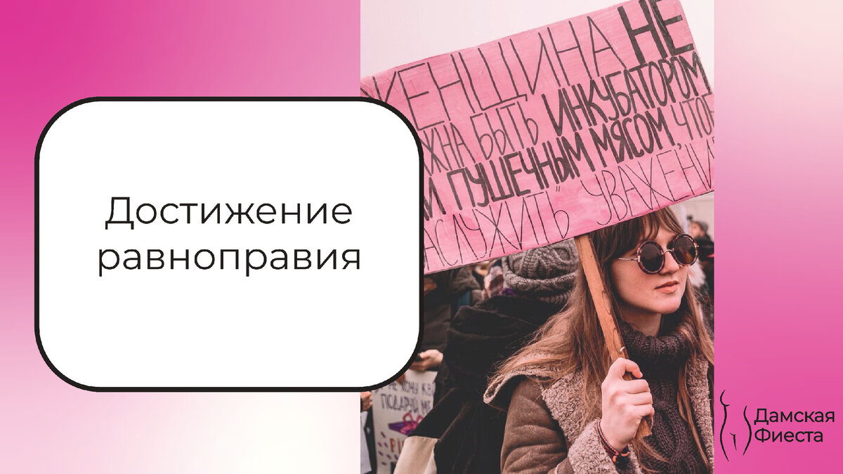 Феминизм стремится к равному и справедливому миру без патриархальных представлений о роли мужчин и женщин. Феминизм — это не просто термин, а общественное движение и философская идеология. Понятие «гендерное равенство» можно считать производной от феминизма.