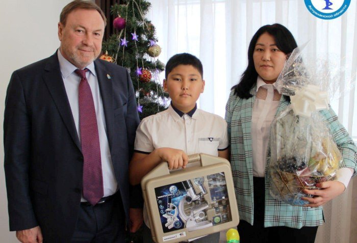 В рамках благотворительной акции. Министр здравоохранения Астраханской области Александр Буркин принял участие в акции «Елка желаний» и в связи с этим посетил семью астраханского школьника. Папа и дяди 11-летнего Арыстана стали добровольцами специальной военной операции. Сам мальчик хорошо учится в школе: он – круглый отличник. Из всех школьных предметов Арыстана больше всего увлекает биология, поэтому глава облминздрава подарил ему микроскоп. Прибор поможет мальчику изучать предмет более углубленно. В беседе с мальчиком Александр Буркин отметил, что увлечение биологией и химией могут в дальнейшем помочь определиться с выбором профессии и предложил ему в будущем пополнить ряды астраханских медиков. «Региональное здравоохранение всегда нуждается в молодых кадрах и будет здорово, если такой увлеченный молодой человек выберет профессию медика», - сказал министр. Фото: минздрав АО