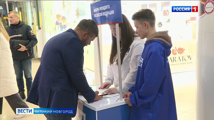 В Новгородской области продолжается сбор подписей в поддержку кандидатуры главы государства Владимира Путина на предстоящих президентских выборах в марте 2024-го года. Один из пунктов сбора подписей открылся в торговом центре "Мармелад" в Великом Новгороде. "Наша партия поддержала нашего кандидата, и поэтому мы принимаем активное сейчас участие, чтобы изъявить свое желание и дать свой голос для того, чтобы Владимир Владимирович Путин пошёл на выборы в 2024-м году", – сказала руководитель регионального исполнительного комитета партии "Единая Россия" по Новгородской области Мария Белкова Заполнять подписные листы на точках сбора новгородцам помогает инициативная молодёжь - волонтёры Победы и "Молодой Гвардии". На выборы Владимир Путин идёт как самовыдвиженец. И для регистрации в качестве кандидата, согласно закону, ему необходимо заручиться поддержкой не менее 300 тысяч россиян. Свой вклад в решение этой задачи вносят и новгородцы. "Я опекун и отец пятерых детей, для меня важно, что