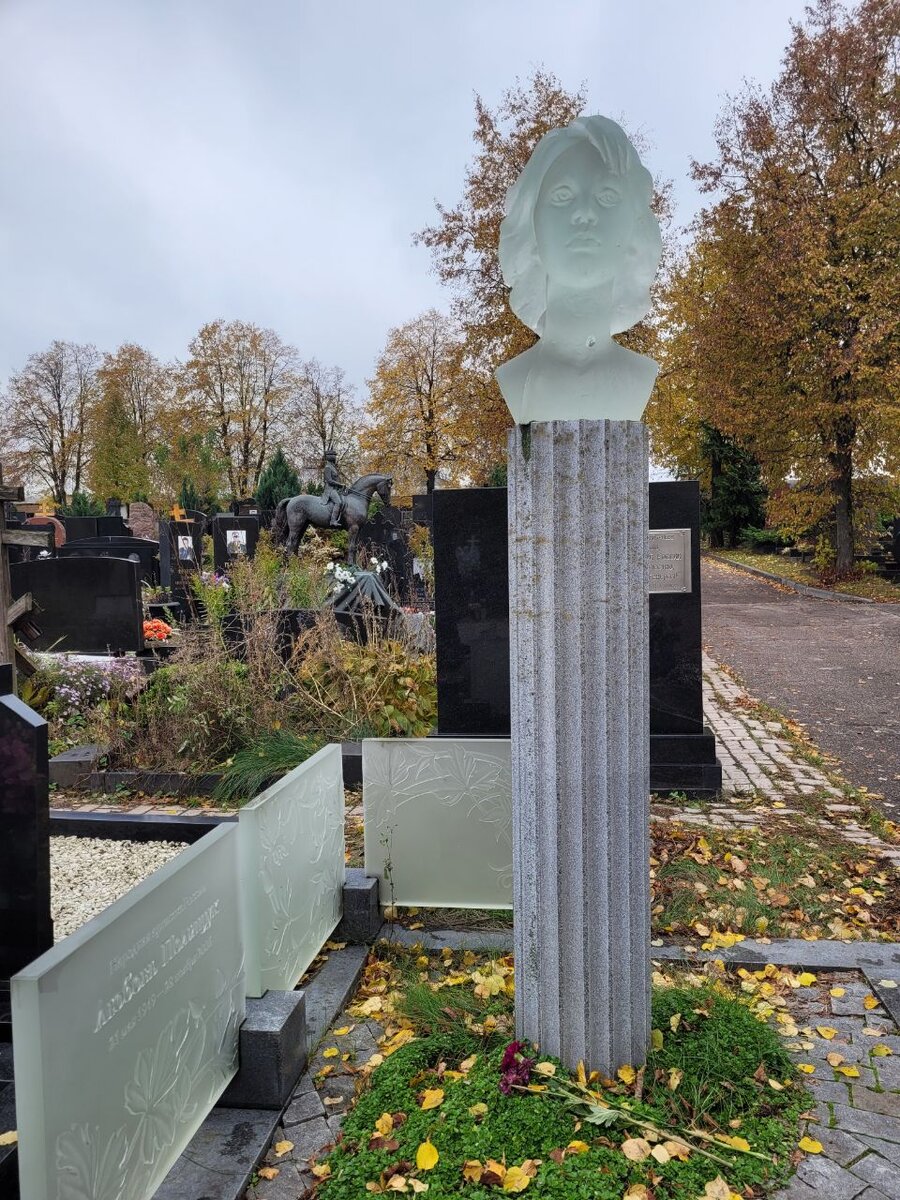 Благодаря огромному количеству захоронений известных людей, Троекуровское кладбище часто называют филиалом Новодевичьего. Именно Троекуровское - одно из самых престижных и дорогих кладбищ в Москве. Этой осенью здесь впервые побывала и я. Показываю, как сейчас выглядят могилы советских и российских знаменитостей. Больше всего здесь захоронено известных актёров и актрис. На могиле Любови Полищук находится её хрустальный бюст, установленный на гранитной колонне. Помните актёра Андрея Панина, игравшего в "Свадьбе" и "Бригаде"? Могила Панина выделяется декором - на гранитной глыбе расположено сразу 2 каменных шута. Последний приют здесь обрёл и мой любимый Николай Караченцов. На его монументе изображена сцена из рок-оперы "Юнона и Авось": умирающий граф Резанов, стоящий на коленях. Актёра Вячеслава Галкина многие помнят по сериалам "Мастер и Маргарита", "Дальнобойщики", "Спецназ" и "Диверсант". На могиле актёра сейчас находится его скульптура, на мой взгляд, очень талантливо сделанная. Оч