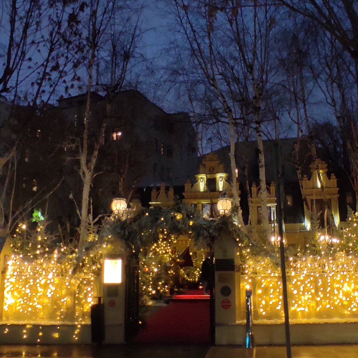 #416 Это, пожалуй, самая нежная и креативная зимняя локация в этом году. К Московскому фестивалю Путешествие в Рождество не имеет никакого отношения. Просто хозяева ресторана украсили свое заведение в лучших традициях зимнего праздника. Здесь не просто рождественская ёлка, а настоящий зимний лес - много ёлок, много снега. Снег на елях искусственный, он мягкий и теплый, но во время и после снегопада он перемешивается с натуральным снегом. Поэтому нужно быть осторожным в фотозоне. Можно присесть на кресла, чтобы сфотографироваться. Но!!! На меховых накидках на кресла настоящий снег. При мне одна дама села фотографироваться, а встала уже с мокрой попой😱... , снег быстро растаял под ней. Но это, пожалуй, единственный минус на всей площадке. Очень красивая подсветка. Это яйца динозавра. Хрустальные люстры выглядят легко и невесомо, не смотря на снег и лёд. По территории заведения расставлены сказочные фонари. Я уже сказала, что это территория ресторана? Само здание выглядит сказочным замк