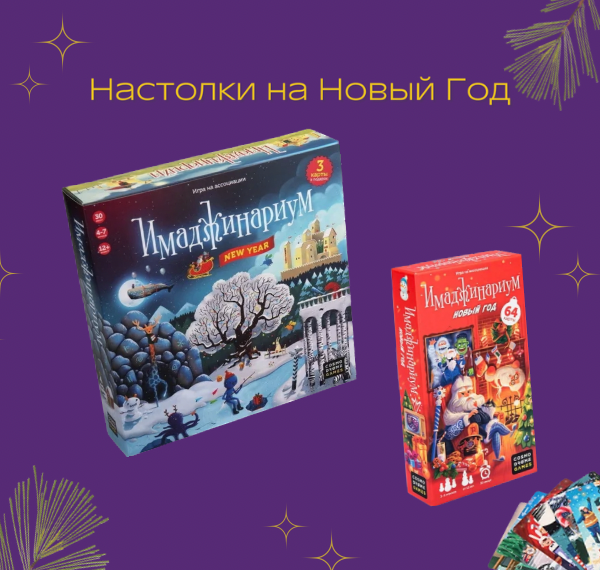 До Нового года остались считанные дни. Осталось сделать последние задачи на учёбе и работе и пуститься в празднование этого волшебного праздника. Новогодние каникулы — отличное время, чтобы провести время в кругу семьи и друзей. Стол, ломящийся от оливье, крабового салата и селёдки под шубой, пузырьки игристого, залпы салюта, звук трескаюшихся бенгальских огней — безусловные атрибуты праздника, без которых не обойдётся ни один Новый Год. Но не стоит забывать о развлечениях, которые разнообразят совместное времяпрепровождение с близкими во время долгих выходных, — о настольных играх. Команда Р* сделала подборку настольных игр, связанных с Новым Годом. Доставайте бенгальские огни и гирлянды, а на новогодний стол ставьте не только оливье, но и новогодние настолки. Настольная игра Cosmodrome Games "Имаджинариум. New year" «Имаджинариум» в праздничном зимнем оформлении, который включает в себя 3 эксклюзивных карты. Идеальная настолка для игры в кругу семьи и друзей. Игра поможет не только у