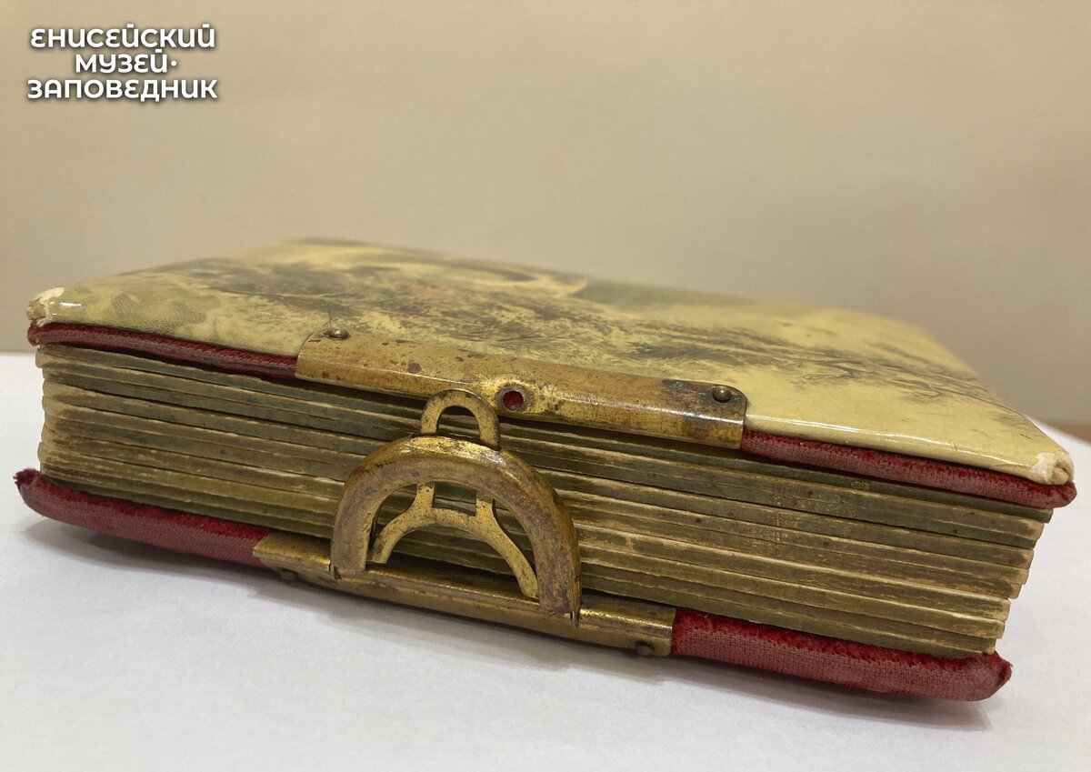 Бесспорно, альбом для фотографий – настоящая семейная ценность, которая передается по наследству от родителей детям. Однако не согласимся с теми, кто утверждает, что «в реальности даже очень качественный фотоальбом не может прослужить более полувека». Перед нами этому яркое доказательство – альбом из собрания Енисейского музея-заповедника с дарственной надписью «На памятъ МанѢ». Сегодня он не такой нарядный, как во времена, когда до его глянцево-бархатной обложки впервые дотронулись руки его обладательницы. То, что это была именно обладательница – сомневаться не приходится. Альбом принадлежал Марии Ивановне Кытмановой (в браке Мусориной). Получила она этот подарок от некоего «П.К.». Возможно, им стал П. Кочнев, которого мы видим на одной из 14 фотографий. Фото небольшого размера, подписано: «На Долгую и Добрую Память Марiи ГоспожѢ Кытмановой отъ П.Кочнева. 17 октября 1905 г. Енисейскъ». Изготовлен сей альбом был на Первой Российской альбомной фабрике Самуила Бехли в Санкт-Петербурге.
