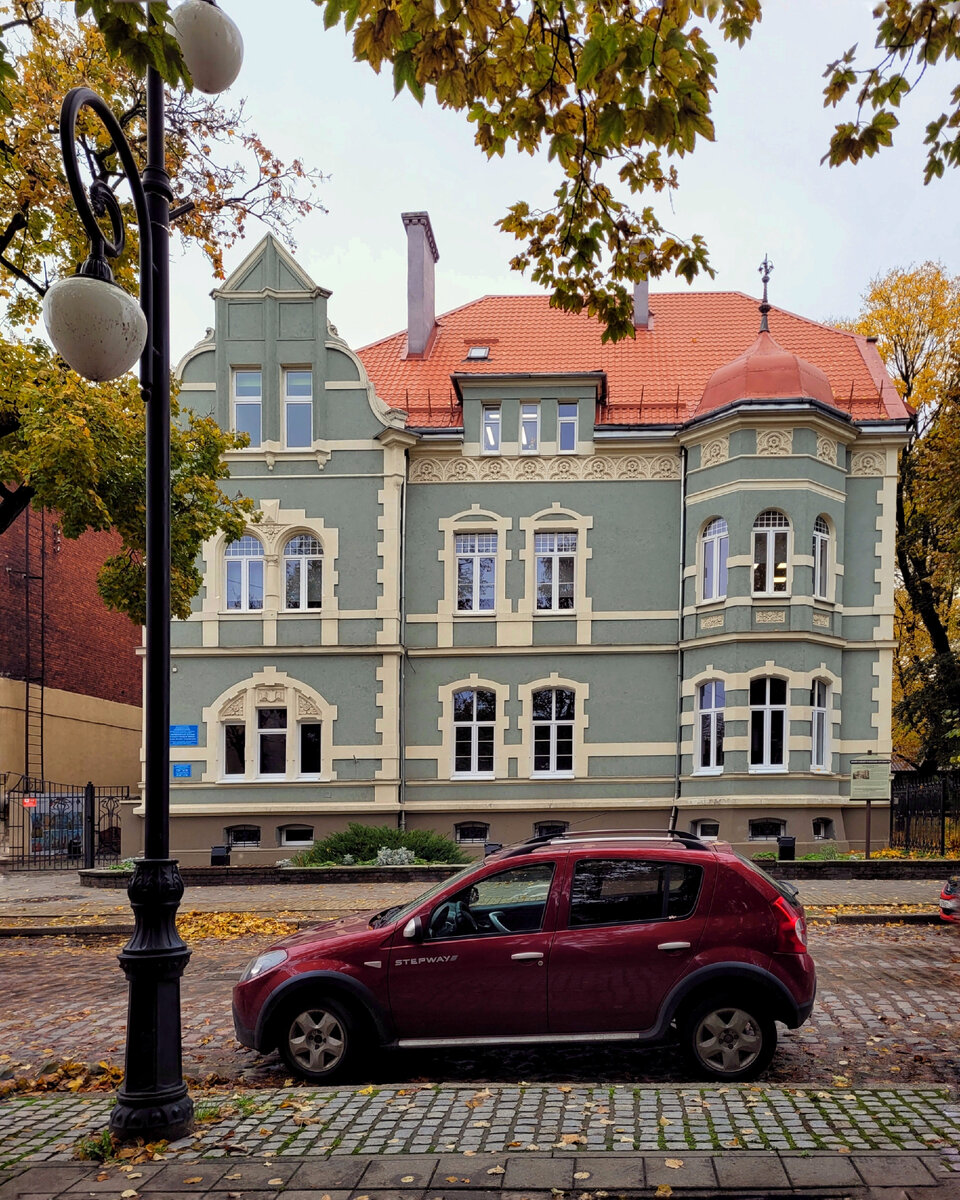 Если большинство из нас помнит немецкие названия Калининграда, Зеленоградска и Светлогорска, то вот с менее известными городами этого региона сложнее. Я и сама-то не знала, как раньше именовался Черняховск. До поездки. Уже потом стала читать. Так вот это был... ...Инстербург. А новое название он получил в честь советского генерала Черняховского, погибшего на территории Восточной Пруссии. С этими знаниями и идём дальше гулять. Первая часть маршрута — в предыдущей статье. Она здесь — жмите. Остановились мы там на улице Пионерской, и я обещала рассказать о двух интересных домах на ней. Тот, что под номером 15... ...мятно-серого цвета — бывшая резиденция обер-бургомистра. Жил здесь городской глава чуть ли не до самого конца Второй Мировой. Но строил не он. В 1912 пряничный особняк возвёл местный коммерсант — господин Шлегер. А сейчас внутри художественная школа. Рядом — музыкальная. Это уже жёлтый дом на Пионерской — 5. Вилла другого здешнего... ...бизнесмена Чибулински. С башенками, леп