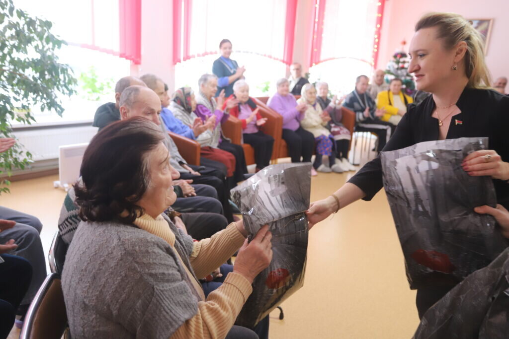 Все материалы Заместитель Министра финансов Елена Печень посетила отделение круглосуточного пребывания пожилых и инвалидов в Жажелке. Она уверена, что акция «От всей души» — возможность отдать частичку тепла и поблагодарить пожилых людей за их многолетний труд. Проживающих в отделении людей поздравили с новогодними и рождественскими праздниками, подарили подарки и в теплой непринужденной обстановке за чаепитием пообщались с ними. Артисты Дома культуры провели целую концертную программу. Со стороны государства предпринимается масса финансовых и моральных усилий для обеспечения старшему поколению достойных условий жизни, чтобы те, кто оказался в интернатных социальных учреждениях, были окружены заботой и вниманием. Бюджет у нас социально ориентированный — и это гордость нашей страны. Поэтому открываются и поддерживаются такие учреждения, но ничто не сравнимо с человеческим теплом, которое мы дарим сегодня этим людям. В конце прошлого года во время благотворительного праздника в рамках