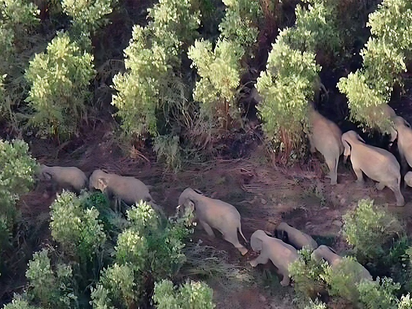 За слонами наблюдают с беспилотников, однако толстокожим видимо не нравится такое назойливое внимание и они прячутся в лесной чаще, хотя не уходят
