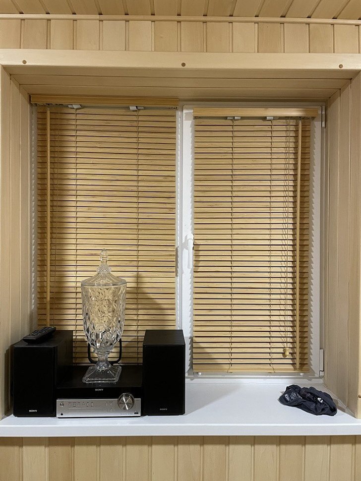 Добавьте в интерьер нотки натуральности. Деревянные жалюзи- это уникальное решение для создания комфортных условий в помещении. Природные материалы уместны в интерьере всегда, можно создать отличное пересечение природы и современности. Ламели горизонтальных жалюзи выполнены из натуральных пород дерева и бамбука. Экологичные ламели покрыты специальной пропиткой, которая увеличивает срок службы жалюзи, изделие не выгорят на солнце, не деформируются и не выцветают. Уход за жалюзи. Для большего срока службы мы не рекомендуем использовать агрессивные моющие средства. Достаточно просто протереть ламели тряпочкой или удалить пыль с помощью пылесоса со специальной насадкой. Горизонтальные жалюзи будут служить вам в любое время года. Изделия создают дополнительную защиту от холода, а так же защищают помещение от жарких солнечных лучей- защищают от перегрева помещения. Регулируйте легко поступление света в комнату, с помощью простого управления веревок можно вращать ламели под нужным углом или