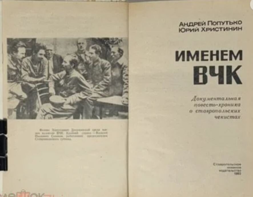 Книга "Именем ВЧК" представлена авторами как "документальная повесть-хроника о ставропольских чекистах". На самом деле она далека от статуса "документальная хроника". Книга не имеет ни одной ссылки на исторические или архивные документы и является сборником художественных очерков, в которых реальные события дополнены множеством выдуманных диалогов и вольными толкованиями авторов. В книгу вставлены два художественных рассказа о Карачае 1942г., в которых повествуется о сотрудничестве карачаевских коллаборационистов с немецкой оккупационной властью. В рассказах с идеологической обвинительной позиции того времени, повествуется об объединении Карачая и Балкарии в единую Карачаевскую область, о праздновании мусульманской Уразы в 1942г. в Кисловодске, запрещенной при большевиках, но на которую прибыли немецкие фельдмаршалы и генералы, о роспуске колхозов и разделе колхозного скота. И как бы между прочим, в несколько предложений рассказывается о расстреле еврейских детей, которое исполнили немцы и якобы карачаевские полицаи. Оба художественных рассказа о Карачае в книге "Именем ВЧК" стали элементом психологического давления на карачаевский народ в идеологической борьбы крайкома КПСС с "мелкобуржуазной деятельностью" карачаевских домохозяек.