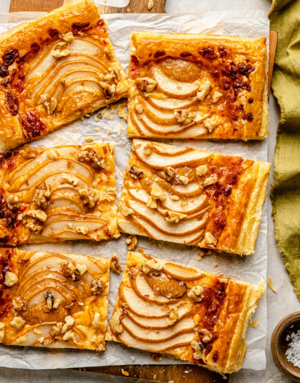 Великолепный грушевый пирог из слоеного теста с пряным сыром чеддер, поджаренными грецкими орехами и капелькой меда. Этот вкусный и простой рецепт грушевого пирога станет идеальной закуской, способной произвести впечатление на друзей и семью, а его приготовление займет всего 15 минут! Подавайте теплым или комнатной температуры.