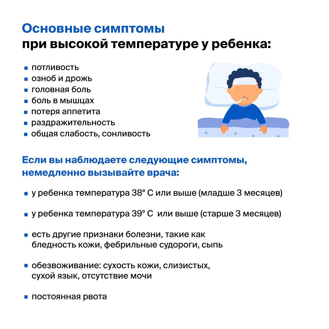 Особое внимание следует обратить на наличие лихорадки у ребенка: