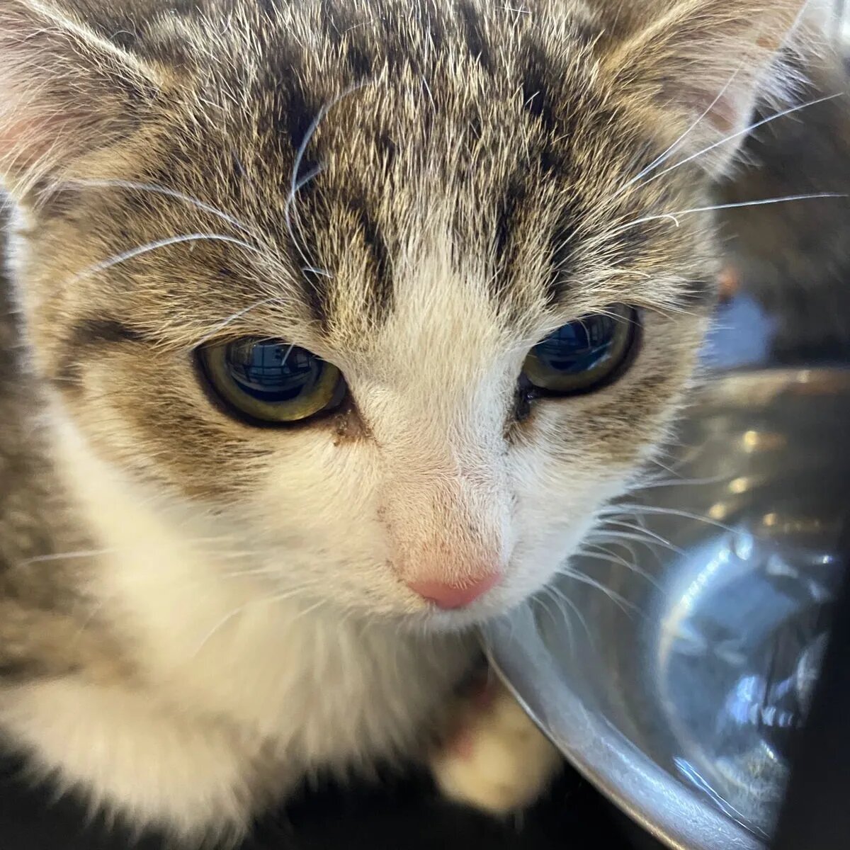 Глазки-блюдца, в них испуг: зачем посадили в клеточку? Где же мама? Девочка родилась и выросла на рынке в магазине. Там родили 2 мамы-кошки, и из 10ти котят выжили трое…И Кроша тоже! Девочке около 5ти месяцев, хотя на вид очень мелкая.. недоедала. Отсюда и имя Кроша. Девочка никогда не знала любви, заботы и игрушек, но, несмотря на это, идёт на ручки, гладится, хоть и напугана. Кроша чистая по анализам, обработана от паразитов, ищет самый добрый домик!🙏 Москва, МО 8 915 255 15 36