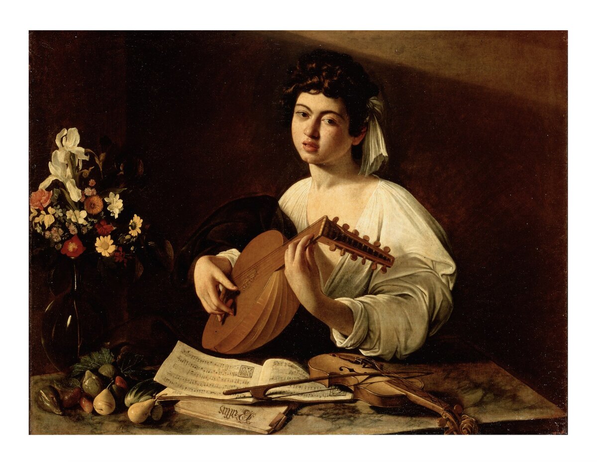 картинам из художественной экспозиции «Музыка в живописи» Картина Микеланджело да Караваджо (1571-1610) «Лютнист» – любимая работа художника и настоящая жемчужина Эрмитажа. Великое полотно, шедевр эпохи барокко, наполненный тайнами и загадками…