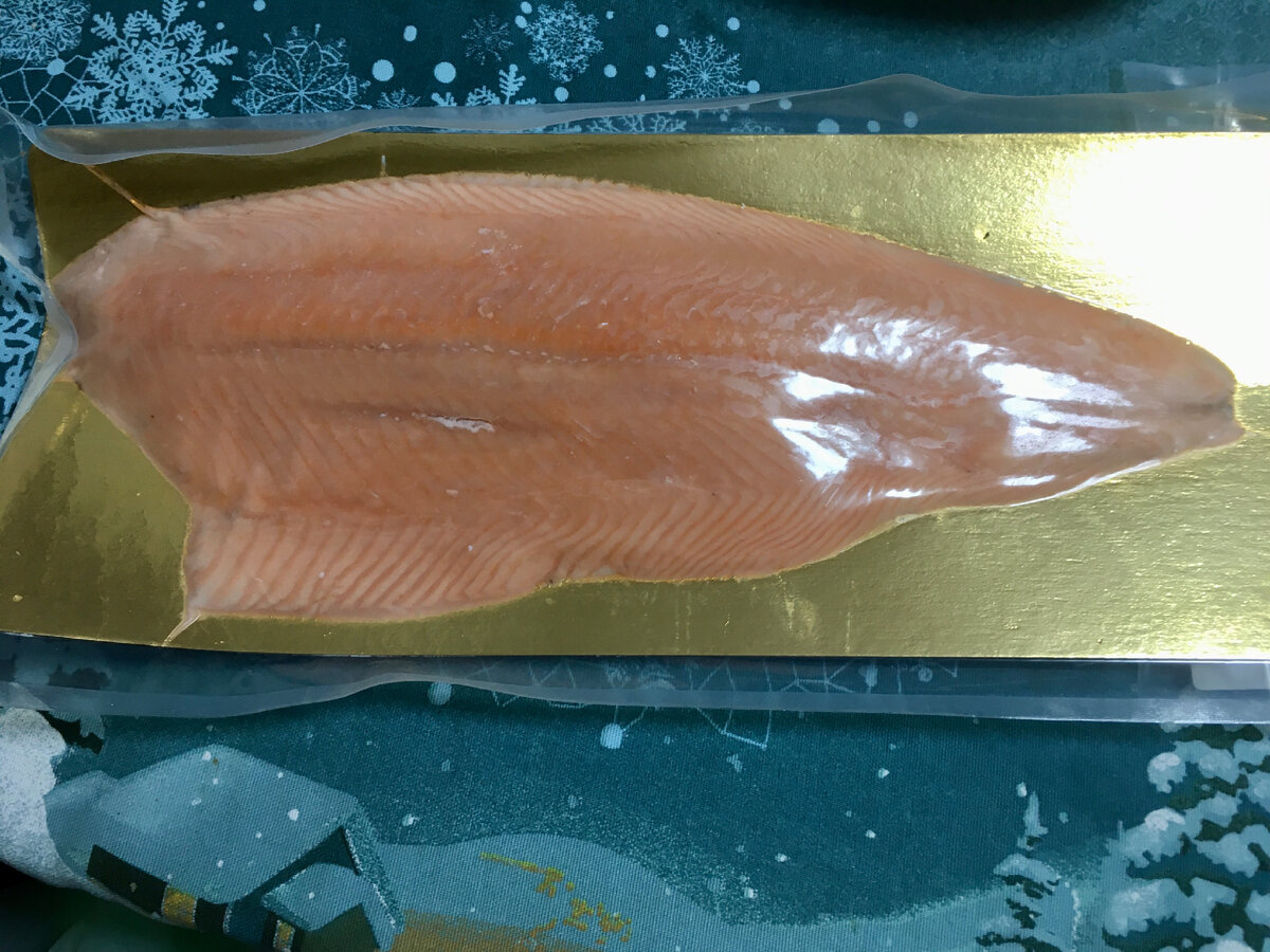 Здравствуйте, дорогие Друзья🥰 Вот и закончились Праздники. Наступили суровые будние дни. Вместе со своим обыденным меню. Хотя не скажу, что наша еда в Праздники сильно отличалась от повседневной. Пожалуй, из чего-то новенького могу выделить филе сёмги, которое засолила. Рыбу раньше не солила. Кроме меня, её никто не кушал. Но не так давно старший сын распробовал солёную форель и ему понравилось. Единственное, что кладёт он филе на хлеб без масла. Стала периодически покупать красную рыбу слабого посола. В основном стараюсь брать нашу местную, так как привозная с консервантами, и на мой взгляд, это сказывается на вкусе. Рыба жёсткая. А может, дело в исходном сырье. Наша форель по цене выходит 570 руб за 300 гр. Многие солят сами. Вот и я решила засолить. Выбрала свежемороженое красивое филе сёмги в рыбном магазине. Кг рыбы 1460 руб. Моя тушка вышла чуть дороже. Как и заявлено на этикетке, филе без кожи. Залезла в интернет, поискала способы засолки. Выбрала самый простой и поня
