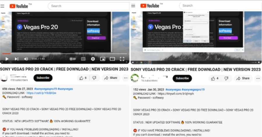 Участники угроз используют видеоролики YouTube с контентом, связанным со взломанным программным обеспечением, чтобы побудить пользователей загрузить вредоносное ПО для кражи информации под названием Lumma. Эти видеоролики YouTube обычно содержат контент, связанный со взломанными приложениями, предоставляют пользователям руководства по установке и включают вредоносные URL-адреса, часто сокращенные с помощью сервисов, как TinyURL и Cuttly и других. Это не первый случай, когда видеоролики с пиратским программным обеспечением на YouTube становятся эффективной приманкой для вредоносного ПО stealer. Ранее были замечены аналогичные цепочки атак, распространяющие вредоносное ПО stealers, clipper и crypto miner. При этом злоумышленники могут использовать взломанные компьютеры не только для кражи информации и криптовалюты, но и злоупотреблять ресурсами для незаконного майнинга. В последней последовательности атак, задокументированной Fortinet, пользователям, ищущим взломанные версии законных ин